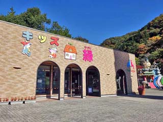 左の写真、団体向けレストラン「コンベンションハウス」の前にて。 中央の写真、「シャクナゲパーク」入口前の広場にて。