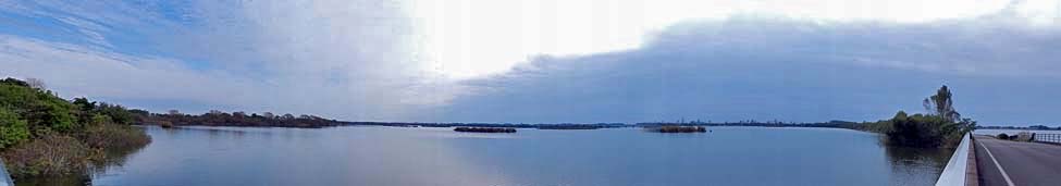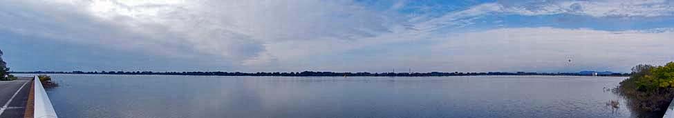 2016/10/30(9:08) 「北橋」から見る「北ブロック」。 「北ブロック」の北側は、「ウインドサーファン等利用エリア」となっており、ウィンドサーフィンやカヌーなどの ウォータースポーツを楽しむことができるが、「北ブロック」での「魚釣り」は禁止されている。 |
