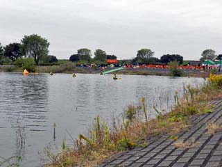 2016/10/30(9:09) 「北橋」から見る「谷中ブロック」。 「谷中ブロック」には、地元小学生の作った「浮島」が浮かぶ。 |