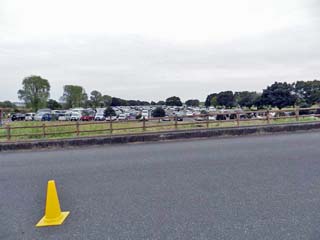 2016/10/30(9:54) 「下宮駐車場」。 「中央エントランス」の南側にある「下宮駐車場」は、 今朝通ったときには、まだ空きがあったのだが、 この時間では、ほぼ満車状態である。 |