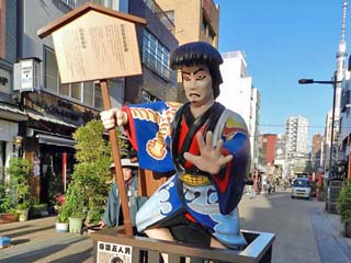 2016/4/15(16:53) 「伝法院通り東商店街」。 「仲見世」と十字に交わる「伝法院通り」だが、 「仲見世」の東側を「伝法院通り東商店街」と呼び、 五人の大盗賊が用心棒となり、この通りを守っている。 |