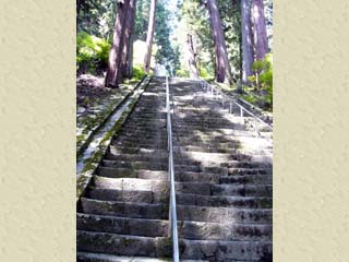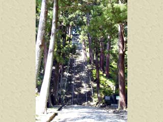 2010/5/28(13:49) 登りながら見る「菩提梯」。 傾斜が急で、一つ上の区画が見えない。 一段目に足を掛けたとたんに「うんっ。何か いつもと違うぞ」と感じた。 いつも一段一段を疲れないように、ゆっくりと 歩くのだが、この石段は、一段の高さ/幅/傾斜 等の全てが疲れるようにできているようだ。 このため、ゆっくり歩いても疲れるのである。 山道なら一段一段が異なるため、中には楽な段も あるが、この石段は、全ての段が、この調子であ る。変な言い方だが「わざわざ、疲れるように、 考え抜かれ、作られた石段」とでも言いたくなる 287段であった。 |