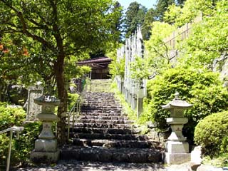 2010/5/28(13:10) 「本地堂(7丁目付近)」。 この先、坂を下れば「久遠寺本堂裏」である。 なお、「久遠寺本堂裏」は、「6丁目」であり、 登山道の始点(1丁目)は、「三門」である。 「久遠寺」から「三門」までの間は、「久遠寺 本堂周辺」のページで紹介する。 |