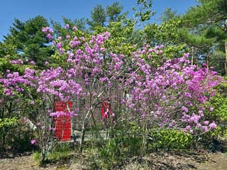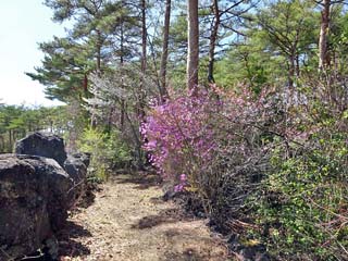 展望台脇に咲く「ミツバツツジ」。