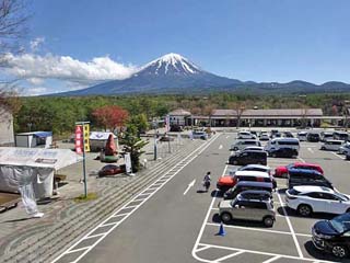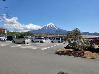 探索路左は、道の駅の駐車場で、富士山が見える。