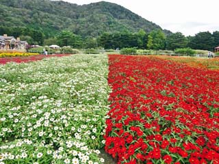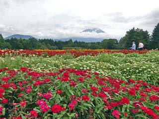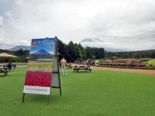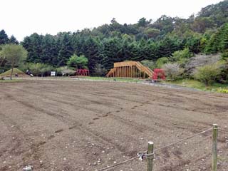 2023/10/3(13:19) 「虹の花まつり」会場の南側。 会場の南側では、翌年の「富士芝桜まつり」に向け、 「芝桜」の植え付けが始まっており、 「富士芝桜まつり」での人気フォトスポット 「展望台」と「ミニ芝桜富士」の周囲は、 この日「立入禁止」となっていた。 |