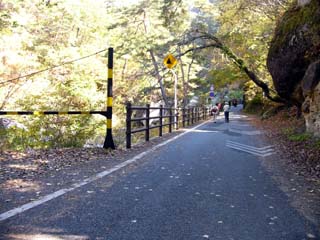 | 2009/11/4(11:57) 昇仙峡下流にある「長潭橋」を11:38AM、出発。 「昇仙峡渓谷通り」を、上流に向け歩く。 この道は、昇仙峡名物の「トテ馬車」も通る。 |