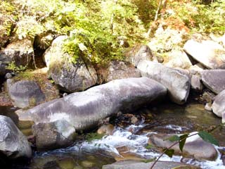 2009/11/4(13:32) 上流から振り返って見る「石門(いしもん)」。 下流から見た「石門」は、この下にあります。 |