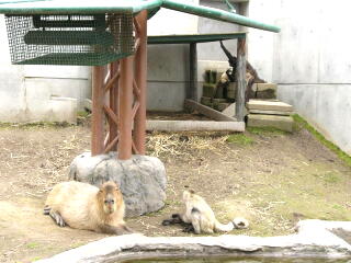 2010/7/2(10:55) 「カピパラ」。 「カピパラ」は。世界最大の「ネズミ」であり、 ここでは、「くもざる(ジェフロイクモザル)」 と同居している。 |
