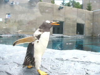 2010/7/2(11:53) 屋外放飼場で見る「ペンギン」。 「ペンギン」の散歩は、冬の積雪期だけ見ること ができる。 |