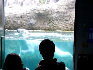 2010/7/2(12:22) プールを泳ぐ「ホッキョクグマ」。 残念ながら、この日は「ホッキョクグマ」の ダイビングを見ることはできなかった。 |
