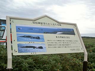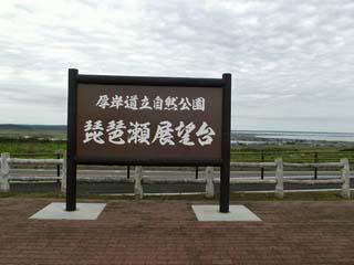 2011/9/11(14:00) 「琵琶瀬展望台」。 「琵琶瀬展望台」は、「霧多布大橋」から 「琵琶瀬湾」に沿って南に、7.5km程走った 場所にあり、丁度「霧多布湿原」の南側である。