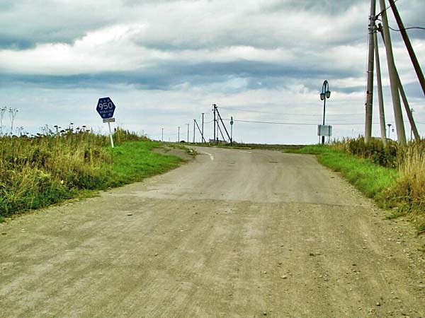 道道950号(野付風蓮公園線)の起点は、 一般車両で行くことのできる「野付半島」の最先端にある。 この先、「野付崎」方面へは、電線と砂利道が続いているが、 一般車両の乗り入れは禁止されている。