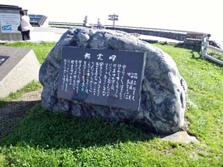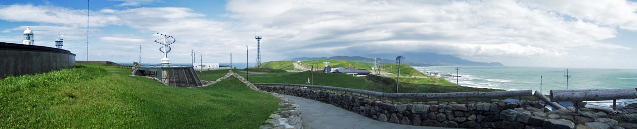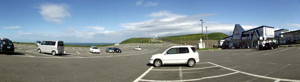 2011/9/7(8:21) 「襟裳岬駐車場」。 「襟裳岬」は、北海道日高山脈の最南端で、太平洋に向かって南へ突き出した岬であり、1981~2010年の観測では、 風速10m以上の風の吹く日が年間290日以上あり、強風が吹く場所としても知られる。 写真は、北の方向を向いて撮影。