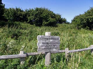 2011/9/8(14:43) 散策路にある標識には「植生保護のため中に 立ち入らないように」とある。 |