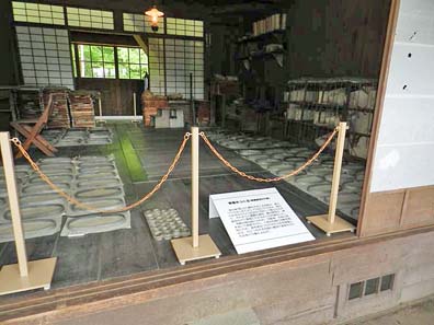 2013/6/17(15:07) 「旧田村家北誠館蚕種製造所」の中。 蚕種を作る(蚕種製造)部屋。 産卵の台紙(蚕種紙)の上に框(かまち)を置いたものが並ぶ。 |