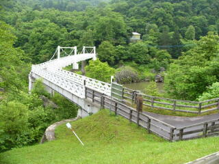 2010/7/3(7:00) 「神居大橋」から見る上流側の景色。 写真右(左岸)の川岸には、神居古潭変成岩層が 石狩川に浸食されてできた、「神居古潭おう穴 群」が、全長1,200mの間に大きく分けて 7つの群をなして分布。大きいものは直径5m あり、規模からみても地学上貴重な存在といわ れ、旭川市指定天然記念物となっている。 また、左(右岸)には、「やつめうなぎとり岩」 があり、開拓初期に、ここで多くの「やつめ うなぎ」を捕ったといわれる。 |