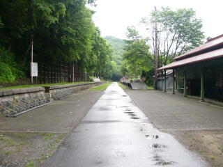 2010/7/3(6:46) 「旧神居古潭駅」線路跡。 線路跡地は、「旭川市」から「神居古潭」を結ぶ 総延長19.37kmの「旭川サイクリング ロード」として整備されている。 |