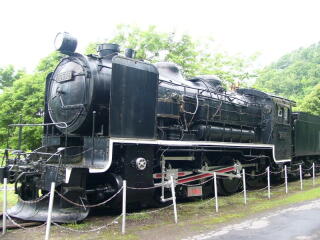 2010/7/3(6:52) 蒸気機関車「C57201」。 1937~1947年の間に201輌が製造さ れ、主に急行旅客列車用機関車として活躍する。 ここにあるのは、201番目に製造された最後の 「C57」である。 |