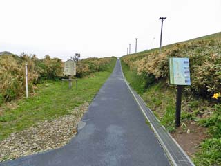 2013/6/19(8:45) 遊歩道を岬突端へと向かう。 後述する「展望広場」は、写真右方向の高台にある。 |