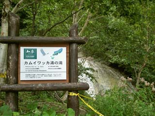 2011/9/9(7:55) 「一の滝」から下を見る。 なお、「カムイワッカ湯の滝」まで来た ついでに、「知床大橋」方面まで行ってみたいと 思われる方も多いかと思いますが、2011年 現在落石の危険があるため、通年通行止めです。 「カムイワッカ湯の滝」から先の交通規制状況に ついては、最新情報の確認をお願いします。 |