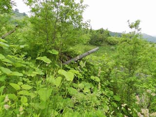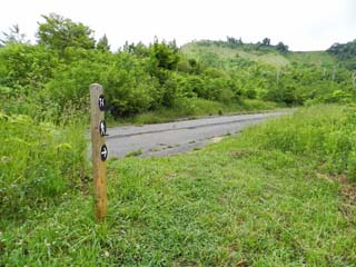 2013/6/22(8:10) 「旧国道230号」を歩く。 写真中央左付近には、標識「T-5」がある。 |