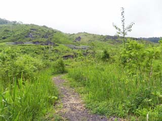 2013/6/22(8:14) 「有くん火口」に向け歩く。 噴火の影響であろう。高い木がないため、草原の中の ハイキングといった素晴らしい雰囲気である。 |