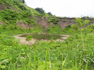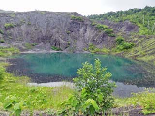 2013/6/22(8:28) 「有くん火口」。 水の色は、神秘的なエメラルドグリーンである。 写真をクリックすると拡大写真(600x450)が 表示されます。 |