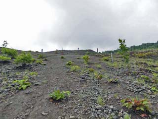 2013/6/22(8:20) 「珠ちゃん火口」。 平成12年(2000)の噴火では、60ヶ所以上の噴火口が できたという。 「珠ちゃん火口」は、その中で最後まで活動していた 西端の火口である。 写真をクリックすると拡大写真(600x450)が 表示されます。 |