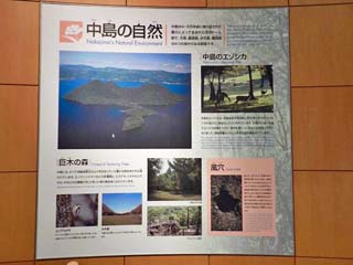 2013/6/22(9:15) 「中島の自然」。 洞爺湖のほぼ中央に浮かぶ「中島」には「森林博物館」 等があり、洞爺湖温泉街を発着する遊覧船で島に渡る ことができる。 案内板には、「中島は、4~5万年前に繰り返された 噴火によって生まれた溶岩ドーム群」とある。 写真をクリックすると「中島の自然」の案内板が 表示されます。 この案内板は、960x960ピクセルあります。 案内板の文字を読みたいときには、表示された 画像をクリックし、スクロールバーをご利用下さい。 |