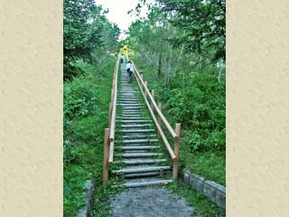 2011/9/7(16:34) 「コッタロ展望台」に至る途中の休憩所(16時32分撮影の場所)から見る景色。 下に見えるのが、道道1060号(クチョロ原野塘路線)。 この方向に、「シラルトロ沼」、「塘路湖」があると思うのだが、標高がそれ程には高くないためか、この位置からは見えないようであった。 |