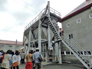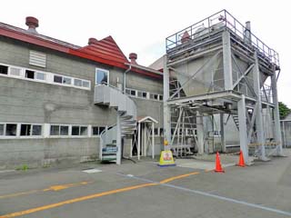2013/6/18(15:09) 「粉砕棟」。 「キルン塔」で、乾燥させた麦を細かく砕く。 (建物内の見学はなし) |