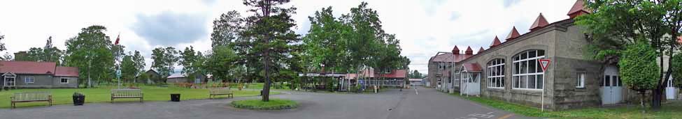 2013/6/18(15:17) 写真左に「リタハウス(旧研究室)、中央の道を奥に進むと「1号貯蔵庫」がある。中央の道と中央右の建物の間に「竹鶴政孝像」がある。 |