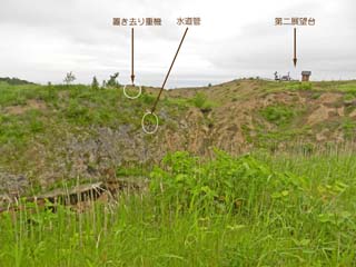「第一展望台」から「第二展望台」へ向かう途中で見る 「置き去り重機」。 |