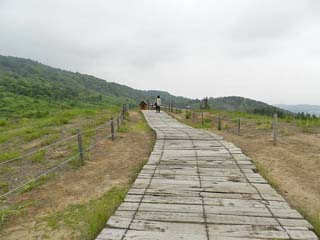 隆起してできた2000年新山の頂部「第二展望台」に 向かって造られた「散策路」の登り坂となっている。 |