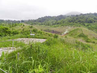 「地熱帯」。 現在の町道「泉公園線」にある「西山火口観察台」から 見ると「噴気が上がっている」場所である。