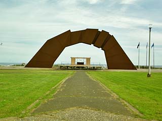 2011/9/11(8:20) 「四島のかけ橋」。 底辺の長さ35m、高さ13m、幅3~5m。 北方四島を4つのブロックで表現し、 それが連なり合って大きなかけ橋となり、 北方領土返還を祈るゲートとして表現されて いる。