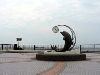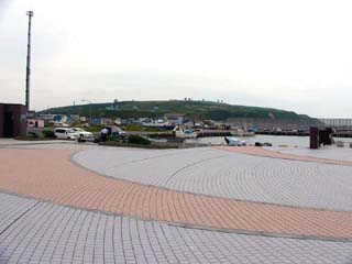 | 2010/6/30(10:24) 「漁港公園」から見る「野寒布岬」先端の景色。 写真左から「自衛隊の稚内分屯地」、「恵山泊港」、「漁港公園」、「稚内灯台」と並ぶ。 注:写真は、横が1,907ピクセルあります。写真直下にあるスクロールバーをご利用ください |