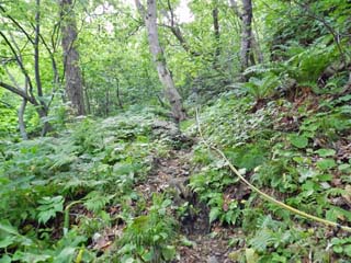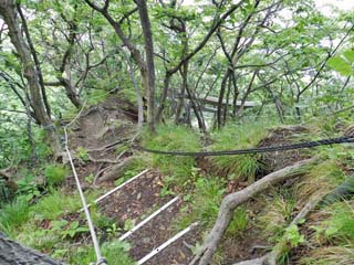 「女人堂」を過ぎると、再びロープの急勾配となる。 |
