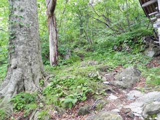 「女人堂」の周りは傾斜が緩み、狭いが平地も あるため、休憩に適する。 |