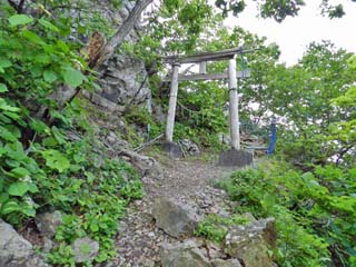 登山口の石段上にある鳥居。 |