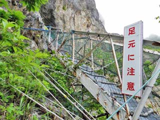 下は谷底。もし、落ちたりすれば怪我ではすまない。 写真をクリックすると拡大写真(450x600)が 表示されます。 |