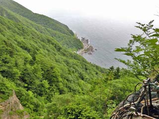 「北尋坊の崖」を降りたところで見る景色。 かなりの高度を感じる。 写真をクリックすると拡大写真(600x450)が 表示されます。 |