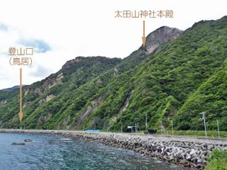 「太田神社」の本殿は、道南五大霊場の一つといわれ、標高485mの「太田山」中腹の断崖絶壁にあり、