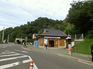 2011/9/8(15:12) 「オシンコシンの滝」駐車場。 駐車場は、国道334号線(知床国道)沿いに あり、滝にも近い。 建物は、売店の「オシンコシン館」。