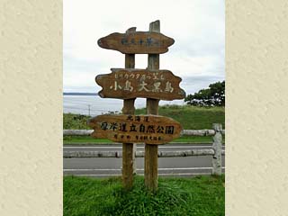 標識には「ピリカウタから望む小島、大黒島」と