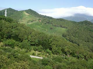 2011/9/10(8:41) 「羅臼国後展望塔」から山側を見る。 写真中央付近は「羅臼町民スキー場」。 |