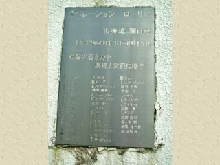2011/9/10(8:47,8:47) 「オペレーシヨン ローリー」の碑。 「羅臼市街地」から「羅臼国後展望塔」に登る途中の「羅臼100年記念公園」にある。 碑版には「世界の若き力を真理と友愛に捧ぐ」とあるが、他に詳細な記述がなく、詳細は不明だが、 英国のチャールズ皇太子が提唱者となり、1984年から4年間、各国の若者たちが世界各地を、 帆船「ゼブ」で旅をしながら、現代では見失われた冒険精神を呼び起こし、国際的連帯感を 育むことを目的とした冒険行事が「オペレーション ローリー」であり、昭和62年(1987)には、 日本での冒険行事も行われたという。 碑版には、この行事に参加したと聞くフォトジャーナリスト「桃井和馬」の名前も刻まれている ことから、この地でもこの冒険行事が行われた証として建立されたものであろう。 |