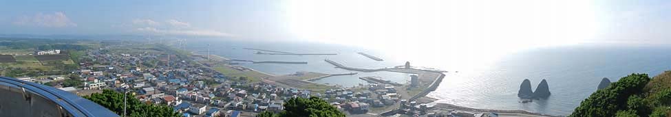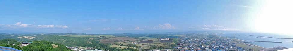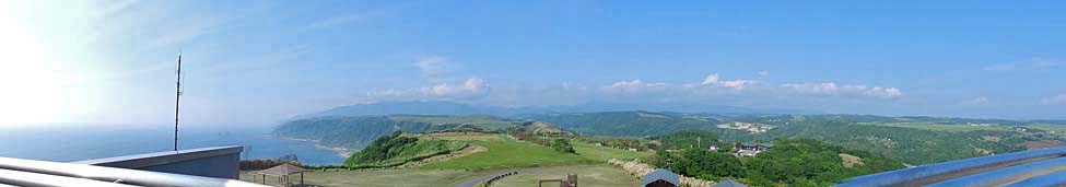「屋上展望台」から見る南西方向の景色。 天候に恵まれれば、この方向に「奥尻島」が見えるのだが、残念ながらこの日は見ることができなかった。 |