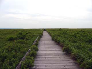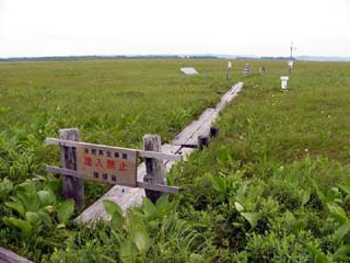 2010/6/30(9:07) 団体さんが集合写真を撮る場所なのであろう。 この日一日だけの感想ではあるが、 ・静けさと景色では、下サロベツ ・花を見るなら、上サロベツ という感じであった。 |